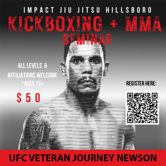 Come join us for a Kickboxing and MMA Seminar with UFC veteran Journey Newson. Journey is an Impact Jiu Jitsu black belt and UFC Bantamweight Division veteran. The seminar is open to all skill levels…